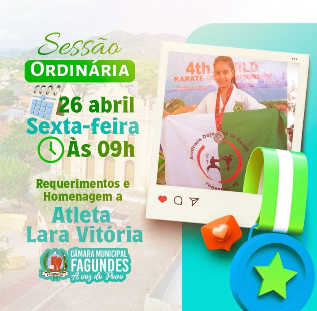 Requerimentos e homenagem a Atleta Lara Vitória.